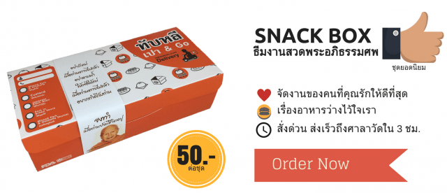 ขนมจัดเบรค อาหารว่าง snack box สำหรับงานสวดอภิธรรมศพ สั่งเช้าได้บ่าย สั่งบ่ายได้เย็น เรื่องอาหารว่างวางใจเรา สั่งปุ๊บ นึ่งปั๊บ จัดส่งทันทีทั่ว กทมและปริมณฑล เพราะงานศพของคนที่คุณรักมีแค่ครั้งเดียว จัดงานให้ดีที่สุด